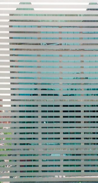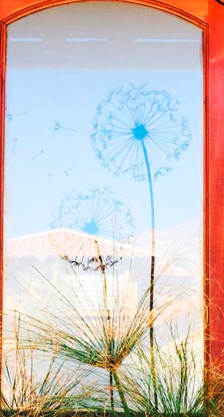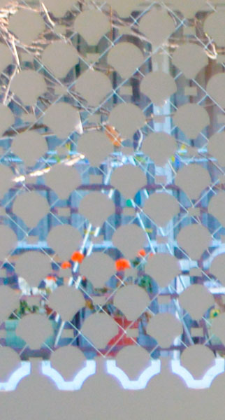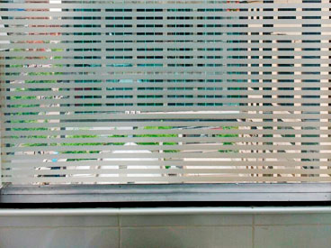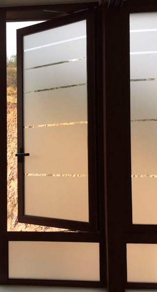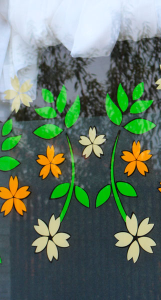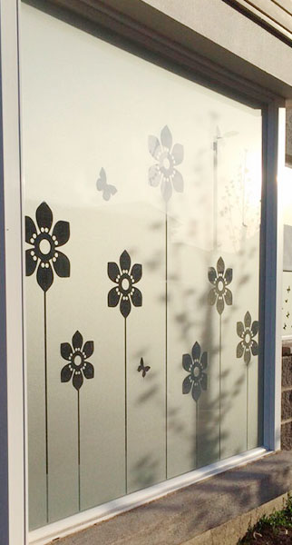 Diseño e Instalación de franjas de seguridad con diseño floral para ventanal de jardín. Código Cb-21