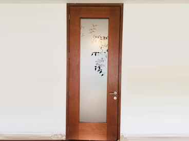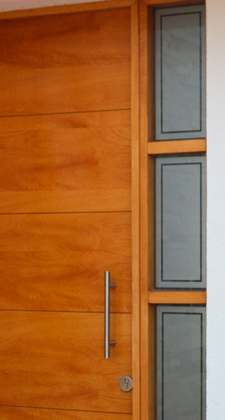 Empavonado Puerta Entrada principal. Diseño e Instalación interior cortada en figuras flores abstractas. Código Cb-70