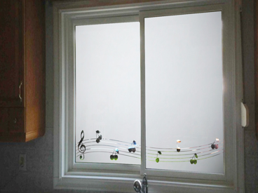 Diseño e Instalación interior ventana dormitorio, vinilo a dos colores. Código Cb-35.