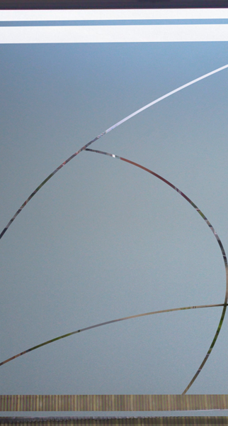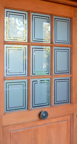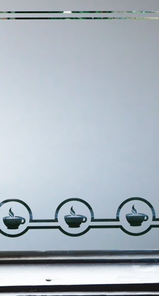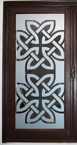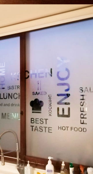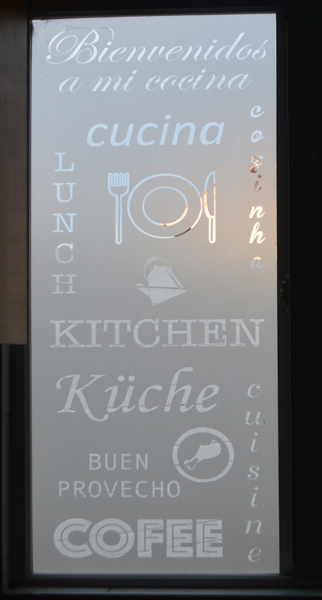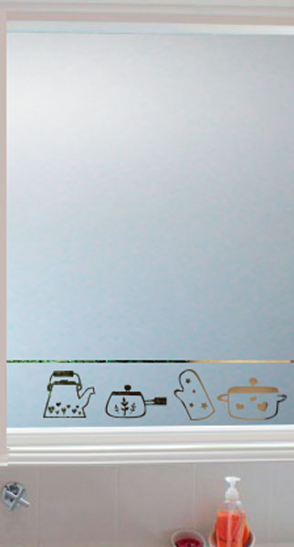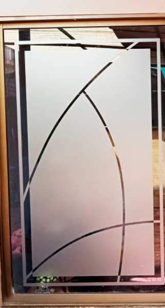 Empavonado diseño de huinchas superior. Instalación interior para vidrio de puerta de cocina. Código Cb-55