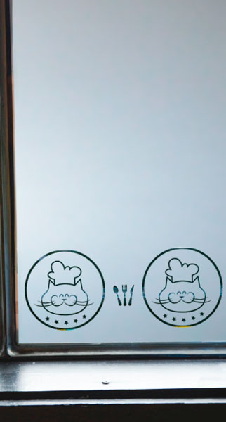 Diseño e Instalación interior cortada con figuras de cubiertos. Código Cb-36