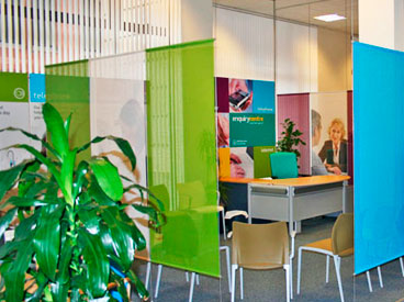Instalación interior. Film tipo Frosted, color gris. Edificio Centro Puerto.