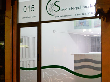 Instalación interior. Film tipo Frosted, color gris. Centro Cultural la Reina